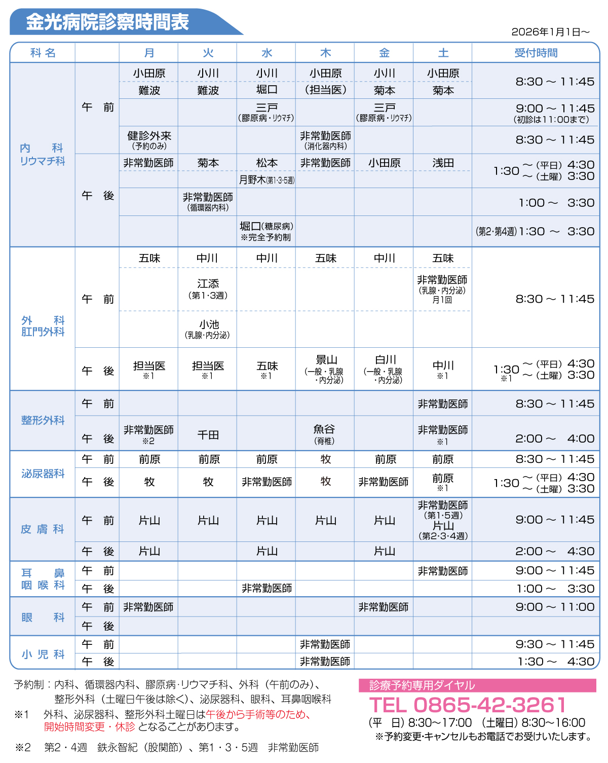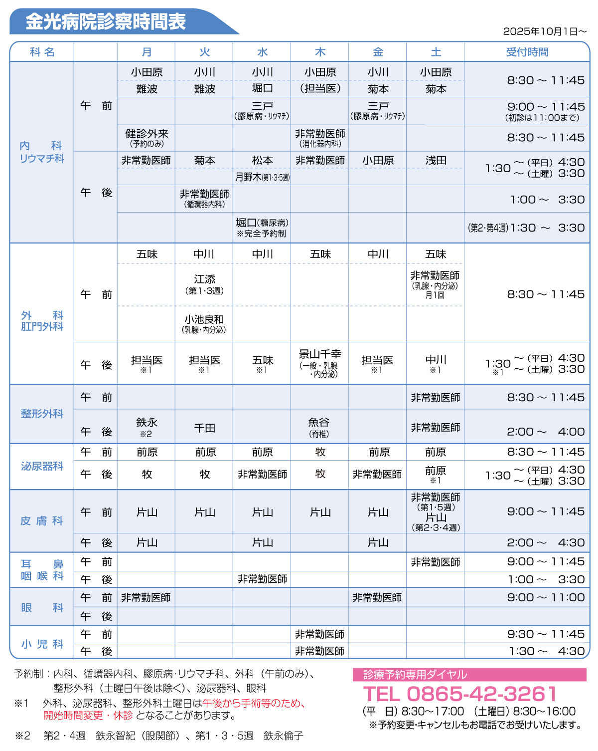 各診療科ごとの、診療日・診療時間は以下よりご確認ください。